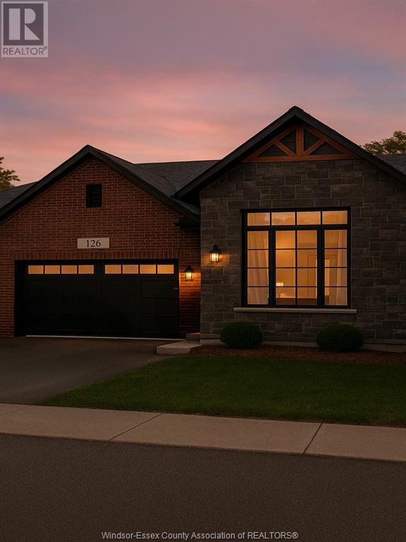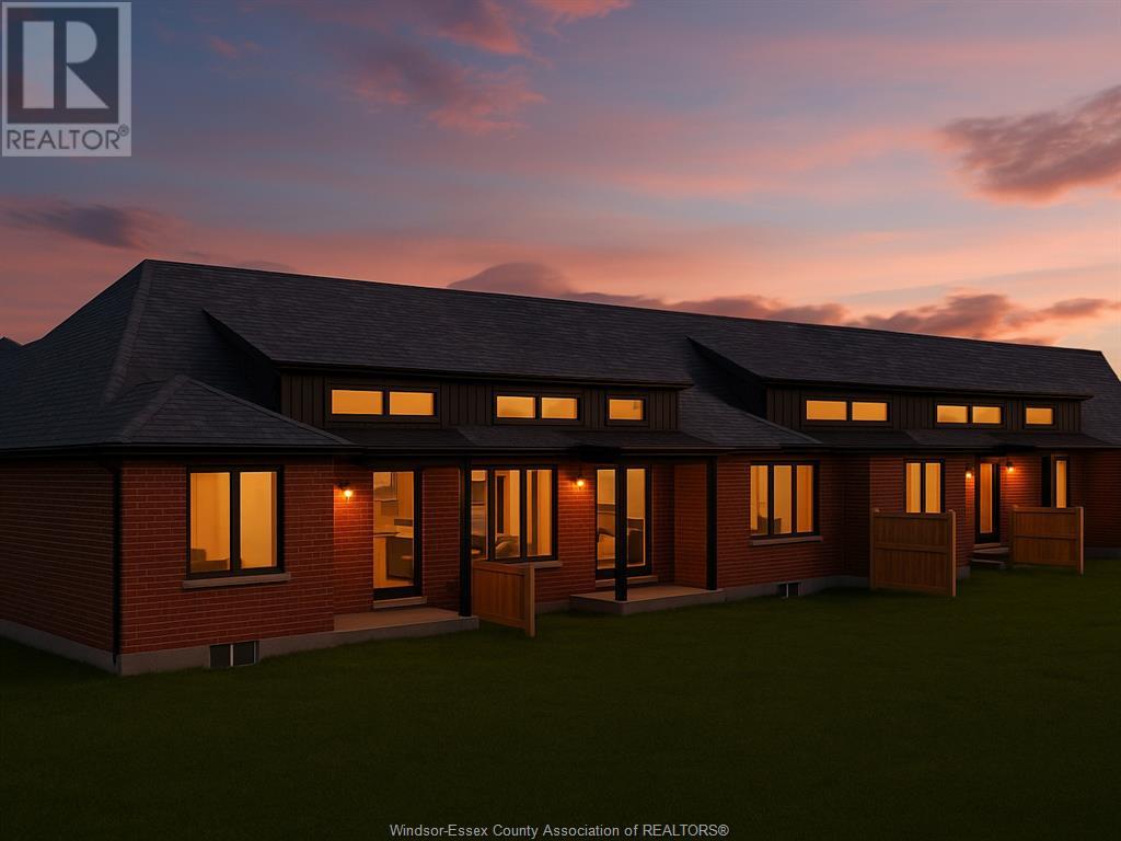 A beautifully crafted brick and stone ranch-style townhome nestled in the heart of amherstburg’s newest residential enclave. Just minutes from the historic downtown core, this 1245 sq ft home blends timeless design with modern living, backing directly onto tranquil greenspace for added privacy and scenic views. This thoughtfully designed 2-bedroom, 2-bathroom residence features soaring 1. 5x ceiling heights, elegant tray ceilings, and striking architectural details inspired by amherstburg’s heritage and waterfront charm. Red brick, grey stone, and black accents highlight the exterior, while live dormers and a covered rear porch add both character and comfort. Inside, enjoy a bright, open-concept layout with two available kitchen configurations and refined contemporary finishes. The one car garage and single drive provide convenient parking. Optional finished basement upgrade includes 2 more bedrooms, a full bath, and open living space—ideal for guests or extended family. Located in callams woods, a community inspired by muskoka’s woodsy tranquility, this home offers a rare blend of serenity and sophistication in one of amherstburg’s most desirable new neighbourhoods.